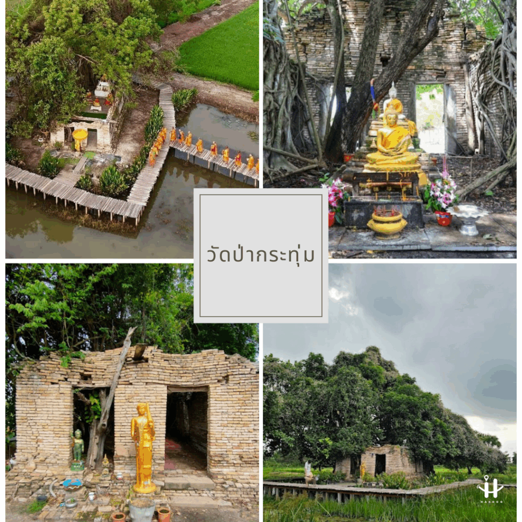 วัดป่ากระทุ่ม เป็นวัดเก่าแก่ที่มีความสำคัญทางประวัติศาสตร์และศิลปวัฒนธรรมของท้องถิ่น วัดนี้มีอุโบสถไม้เก่าแก่ตั้งอยู่กลางบ่อน้ำท่ามกลางทุ่งนา โดยมีรากของต้นโพธิ์ขนาดใหญ่เลื้อยพันรอบโบสถ์ ทำให้โบสถ์ยังคงยืนหยัดอยู่ได้จนถึงปัจจุบัน การตั้งอยู่กลางน้ำและทุ่งนาให้บรรยากาศสงบเงียบ เหมาะแก่การทำสมาธิและสักการะพระพุทธรูปภายในโบสถ์