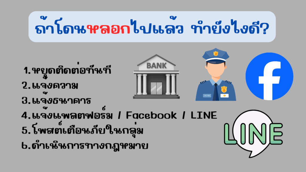 - โพสต์เตือนภัยในกลุ่ม — เพื่อไม่ให้คนอื่นโดนเหมือนกัน